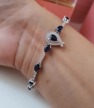 Bracelet #111189 5.5ct 6×4 Sapphire Blue, Ruby, Sterling Silver 925, 7.4 g, adjustable size – Sapphire blue