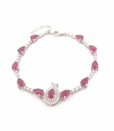 Bracelet sterling silver 925, 7.4 g, adjustable size 16 + 3 cm / 6" + 1", Lobster clasp, with natural Sapphire Blue, Ruby, ~ 5.5 ct, pear shape, faceted, number of center stones 11, size 6x4 mm